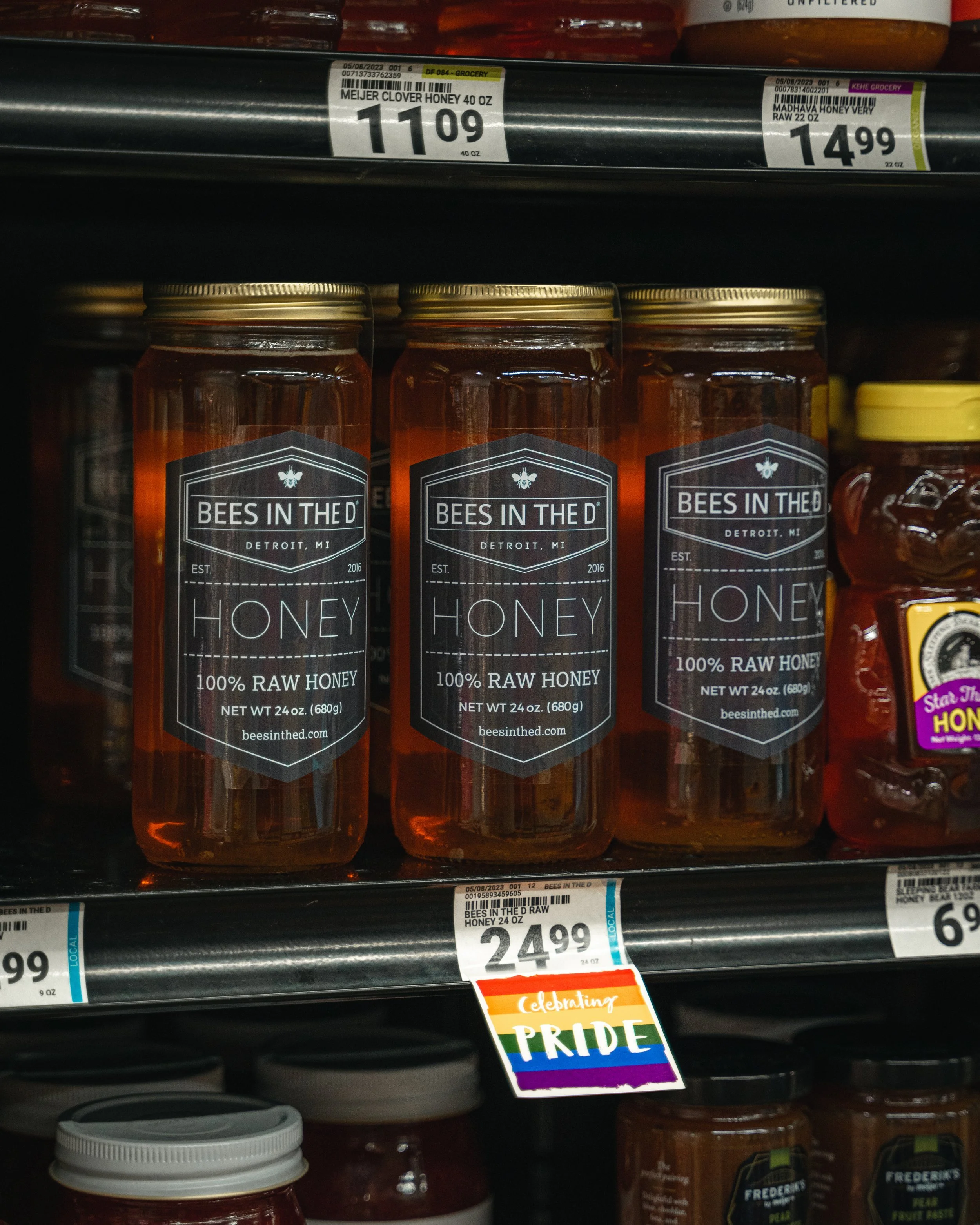 The buzz around Bees in the D honey was growing, and soon, a representative from Meijer’s Rivertown Market asked about carrying it in-store. Bees in the D took advantage of the opportunity to educate people about the organization. “We had black T-shirts that say Worker Bee on the back, and they loved them so much that we created a co-branded T-shirt that had the Meijer logo on one sleeve and the Bees in the D logo on the other, and across the back, it said Worker Bee. We wore them for about two months. It was a great opportunity to share our story,” he said. Soon, Woodward Corner Market started carrying the product as well.